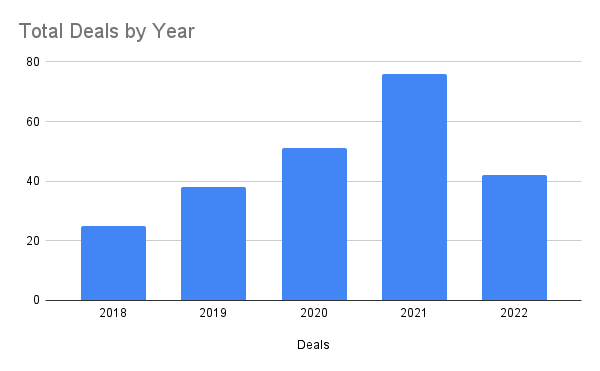 I mean, look at that! You might think wow Kate wtf happened this year? But you’ll soon see, this is not really a big deal. My income did not take a nosedive with this precipitous drop in total deals. I probably sent out fewer books this year (I haven’t counted tbh) but also I did fewer IP deals this year. That was not by design—it just happens sometimes. I think a lot of my clients were busy doing their 2021 deals! As you’ll see below, too, I think the genres I sold had something to do with this. This year I worked smarter, not harder.