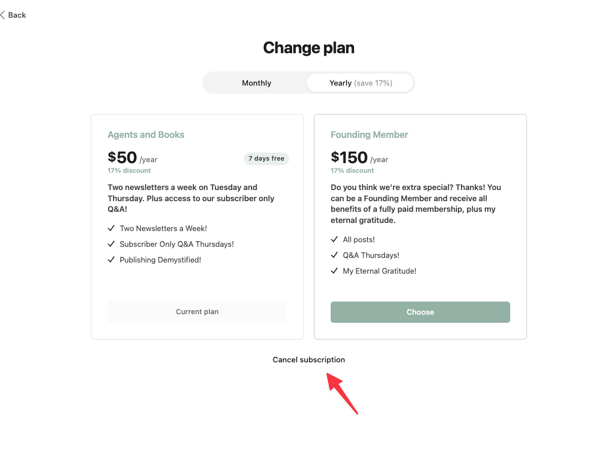 - Click Cancel Subscription.