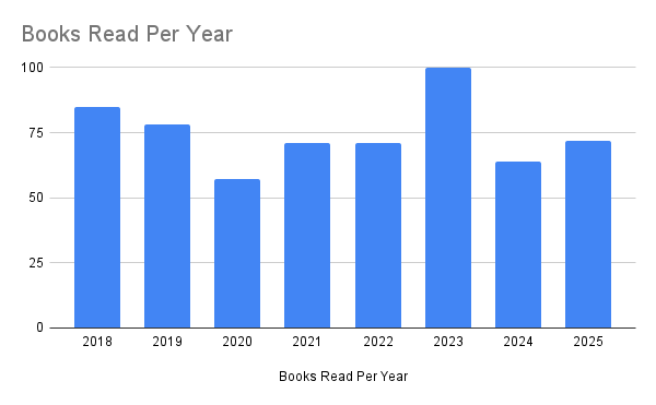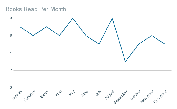 Over 2025, I was relatively consistent in how many books I read a month. Mostly.